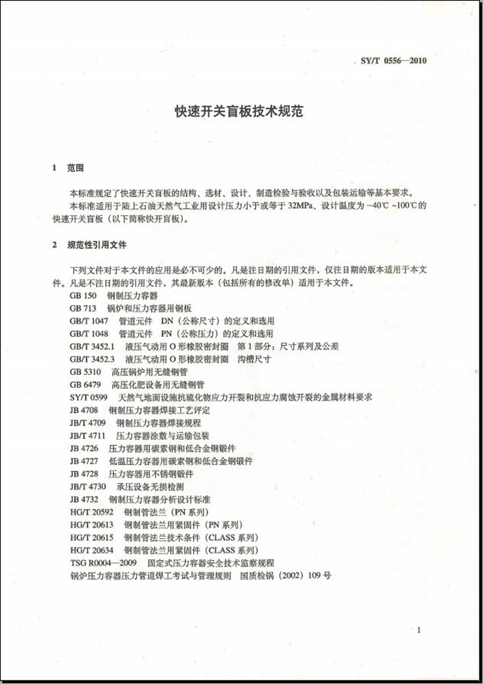 SYT 0556-2010 快速開(kāi)關(guān)盲板技術(shù)規(guī)范